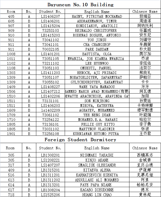 (1) The students who are Undergraduates (over 4 academic years), please check out the dormitory before 30th, June, 2017.