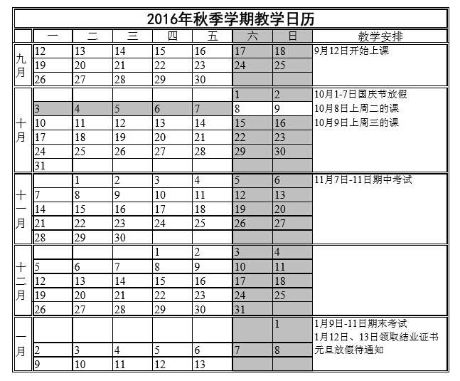 Click here to download the Academic Calendar in Fall semester 2016.